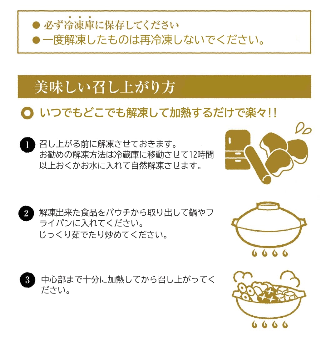 *召上る前に自然解凍して、鍋に移し加熱してお召し上がりください。